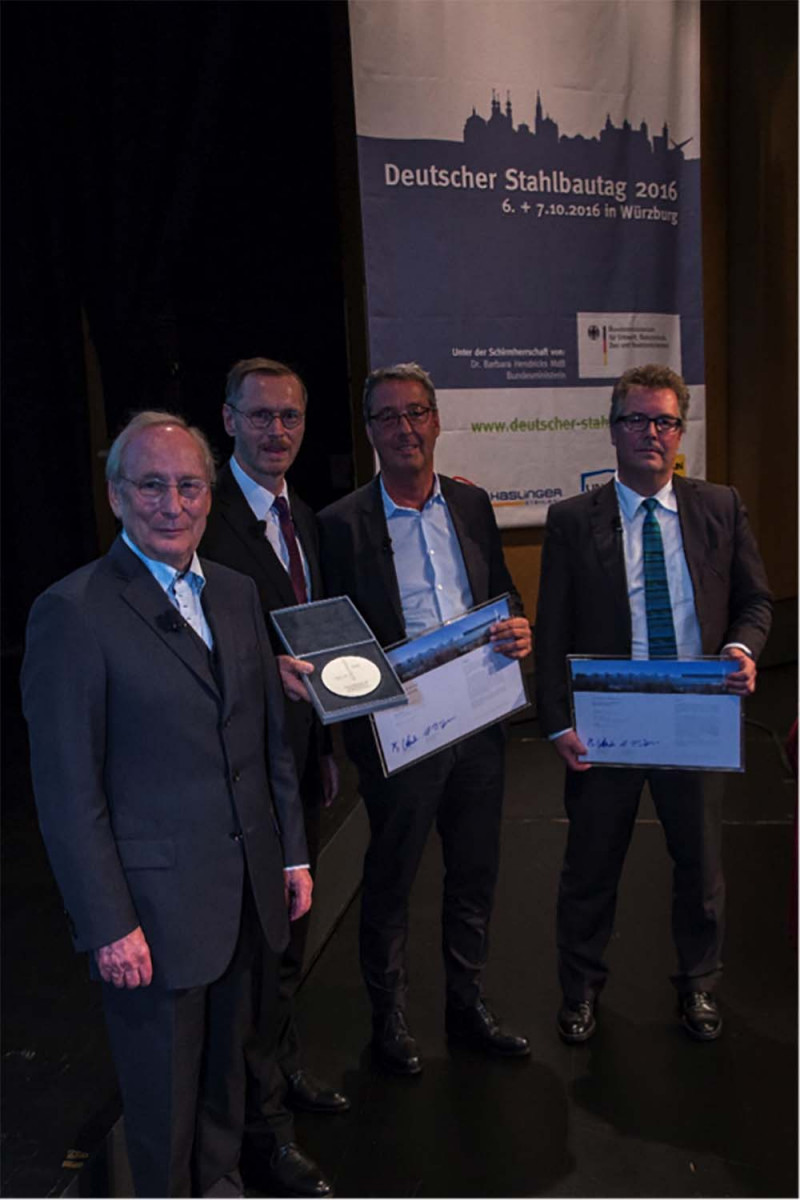 Dass ausgezeichneter Stahlbau neben guter Architektur auch genialer Ingenieure bedarf, ist selbstredend – der Ingenieurpreis feiert eben diese. In der Kategorie Hochbau ging der Preis 2015 an Mike Schlaich vom Büro schlaich bergermann partner für die Überdachung vor dem KundenCenter der VW-Autostadt in Wolfsburg. Das minimalistische Ingenieurbauwerk, bei dem sich Membran und Seile mit dem Stahlbau ideal ergänzen, wirkt fast schwerelos. In der Kategorie Brückenbau ging der Ingenieurpreis an Max Bögl Stahl- und Anlagenbau für die automatisierte Fertigung und die spektakuläre Baulogistik der Sundsvall-Brücke in Schweden.