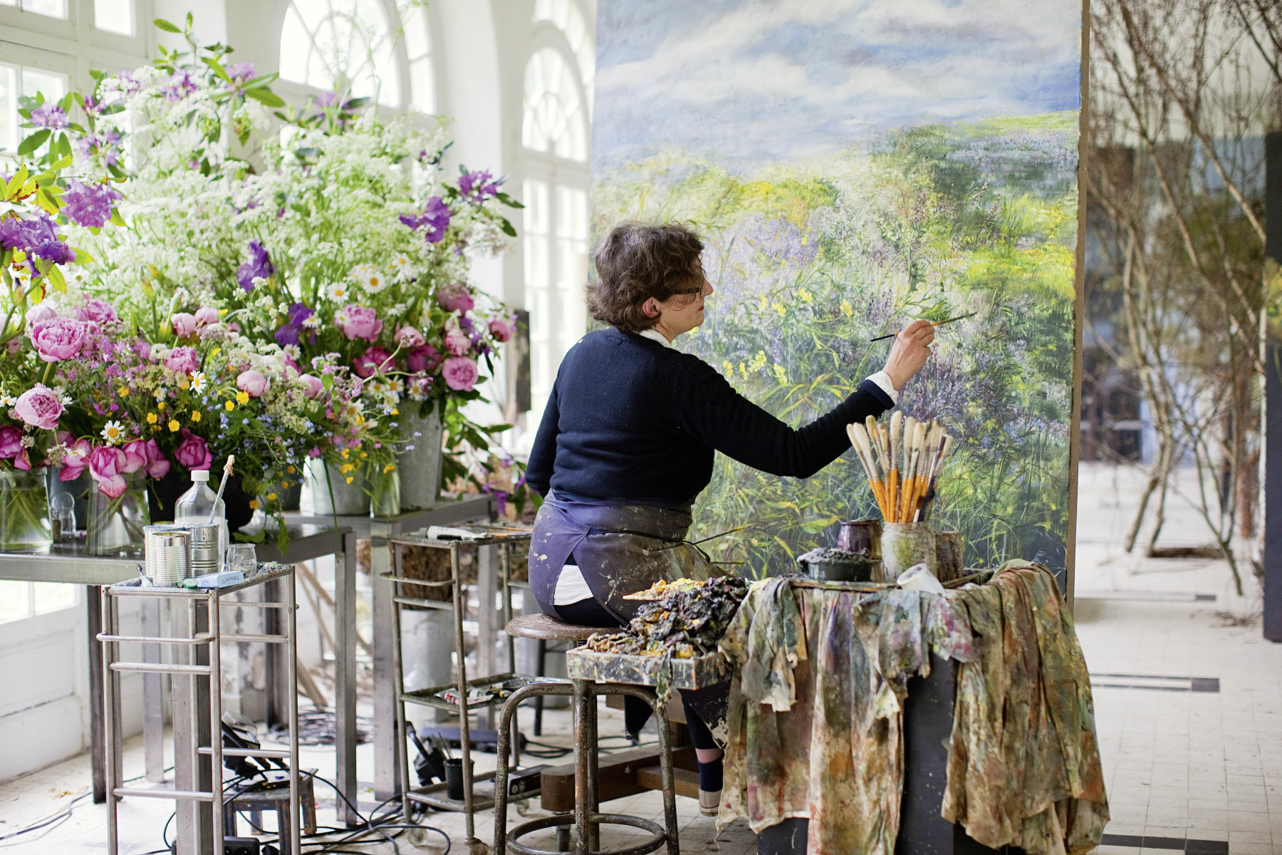 Die Französin, die in einem Schloss in der Auvergne lebt, richtete ihr Atelier in einer ehemaligen Orangerie ein. Im Herzen Frankreichs und weit weg von Paris suchte sie sich einen neuen Schaffensort. Im Laufe der Zeit habe sich ihre Malerei dadurch verändert, stellt sie fest. Sie sei weniger barock, durchsetzt von einer Leichtigkeit, die selbst den Wind in der Blumenlandschaft auf den großformatigen Ölgemälden einfinge. „Meine Malerei ist tiefer geworden, ausdrucksstärker, denn mein Empfinden für die Natur ist gewachsen“, erklärt Claire Basler. Mittlerweile pflegt sie ihren eigenen Garten, beobachtet ausgiebig das Wiegen der Blumen im Wind, ihr Recken nach der Sonne.