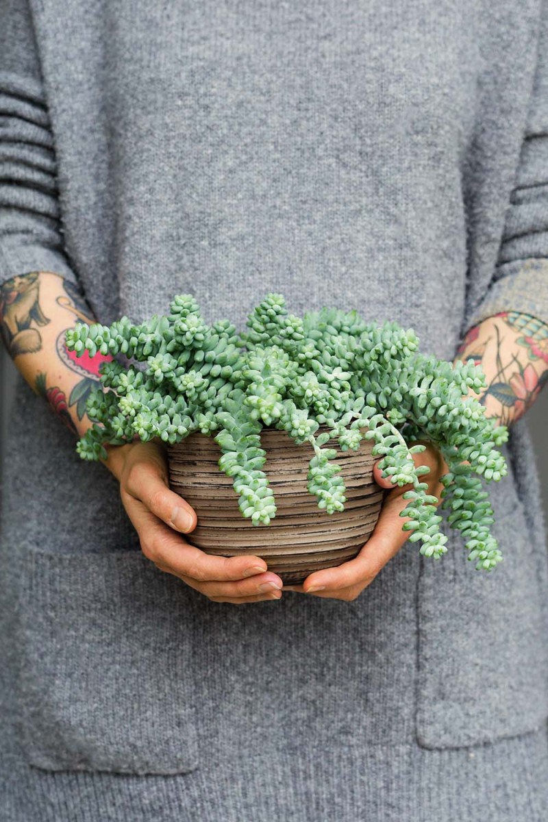 Stellt sie in kleinen Gruppen zusammen und achtet dabei auf unterschiedliche Blattformen und -farben – mixt verschiedene Oberfächen und Texturen, wie etwa einen federleichten Farn mit starken, vollblättrigen Pfanzen. Und auch sonst seid ruhig wild mit Übertöpfen in verschiedenen Höhen, Formen und Farben.