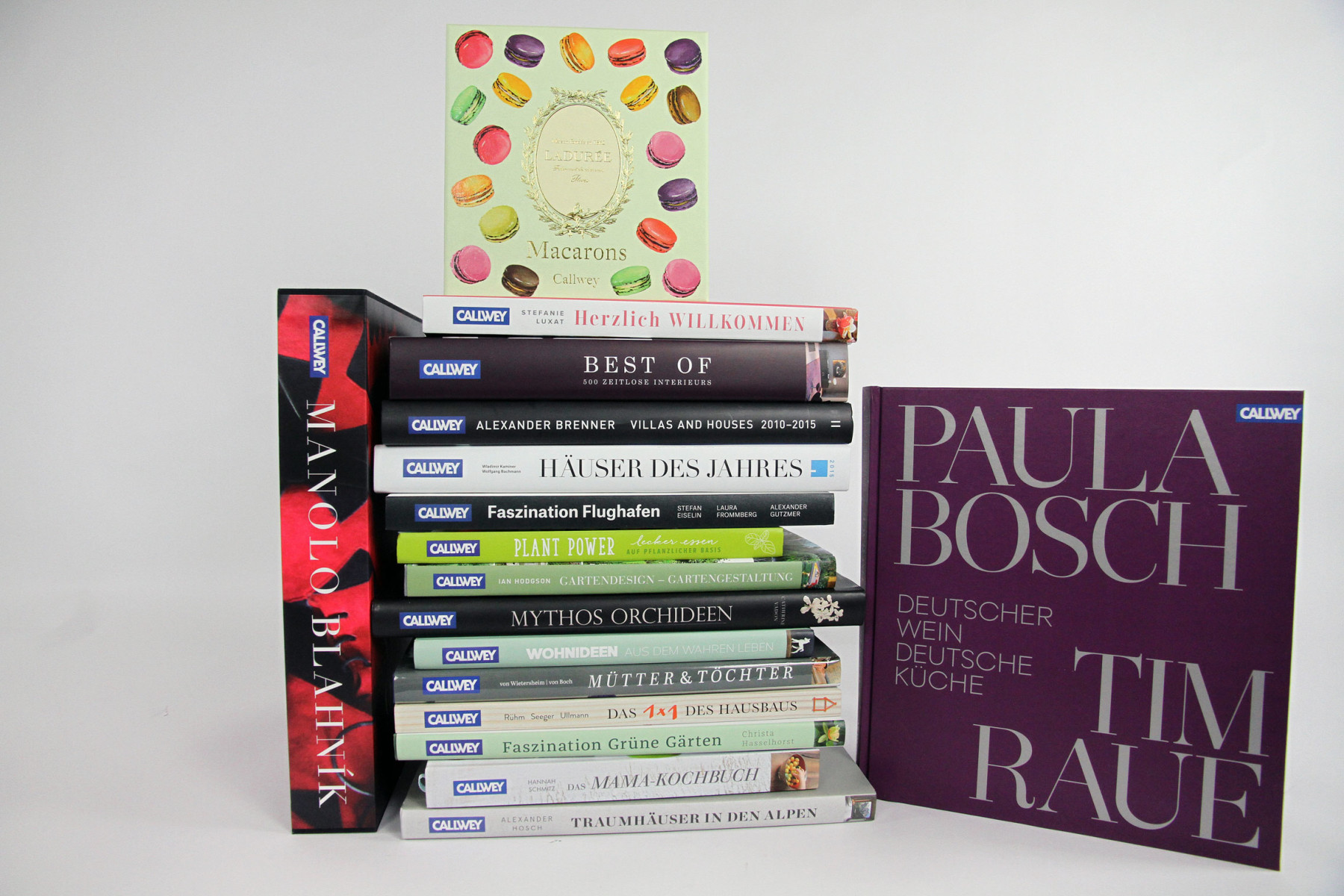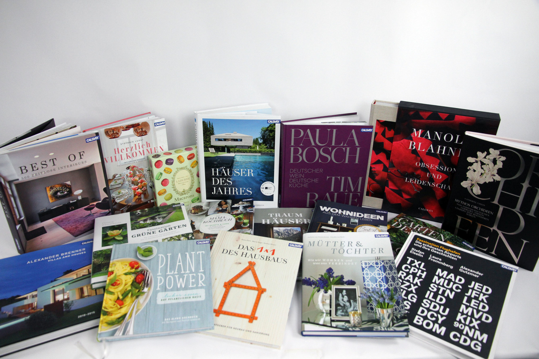 Unter den Kochbüchern haben Paula Bosch und Tim Raue ihr ganzes Wissen über Deutschen Wein und Deutsche Küche in einen Band gepackt, Ladurée verrät in einem einzigartigen Macarons Rezeptebuch alles was man über Macarons wissen muss. Die wunderbare Stefanie Luxat lädt uns in ihre und andere Wohnungen zu besonderen Gelegenheiten ein, Stefanie von Wietersheim und Claudia von Boch haben einfühlsam Mütter- und Töchter-Beziehungen porträtiert und das erste und einzige Buch über schöne, skurrile oder noch gar nicht gebaute Flughäfen und ihre Geschichten lässt uns um die Welt reisen.
