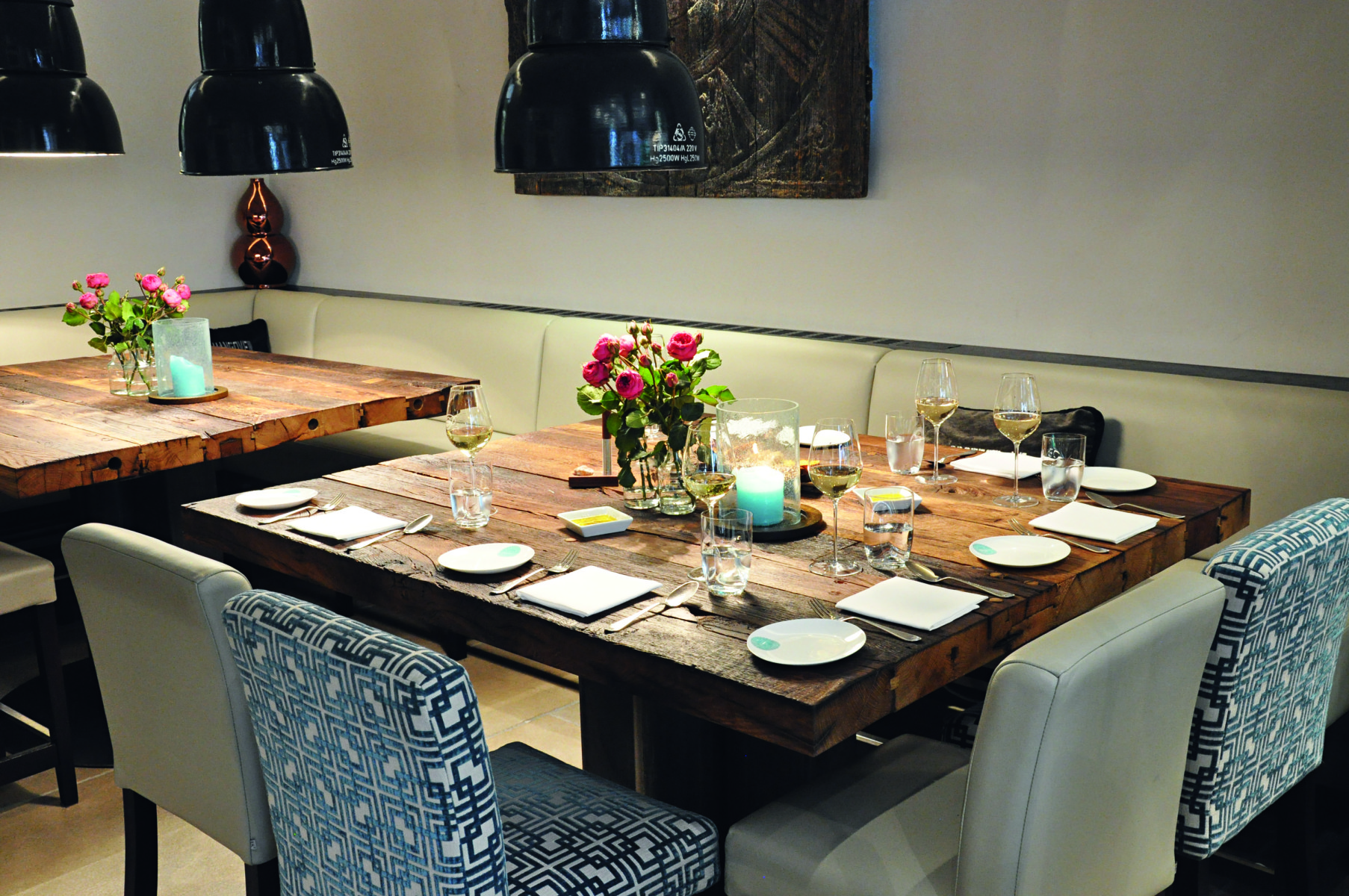 Ein runder oder quadratischer Tisch, so wie hier bei Cornelia Poletto, macht es leicht mit seinen Sitznachbaren zu kommunizieren.