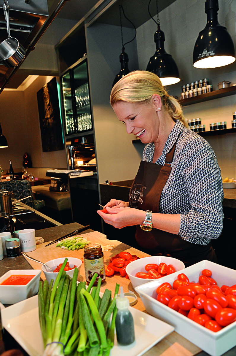 Natürlich darf Cornelia Poletto als Spitzenköchin in diesem Buch nicht fehlen. Sie ist leidenschaftlich in der Küche tätig und schreibt eigene Kochbücher. Für sie ist wichtiger, „eine Sache gut zu können, als drei mittelmäßig“ und daher kocht sie hauptsächlich italienisch. Auch die italienische Tradition des Essens als Familie beim geselligen Zusammensein schätzt sie sehr und lädt oft Freunde ein, die ihre Köstlichkeiten dann genießen können.