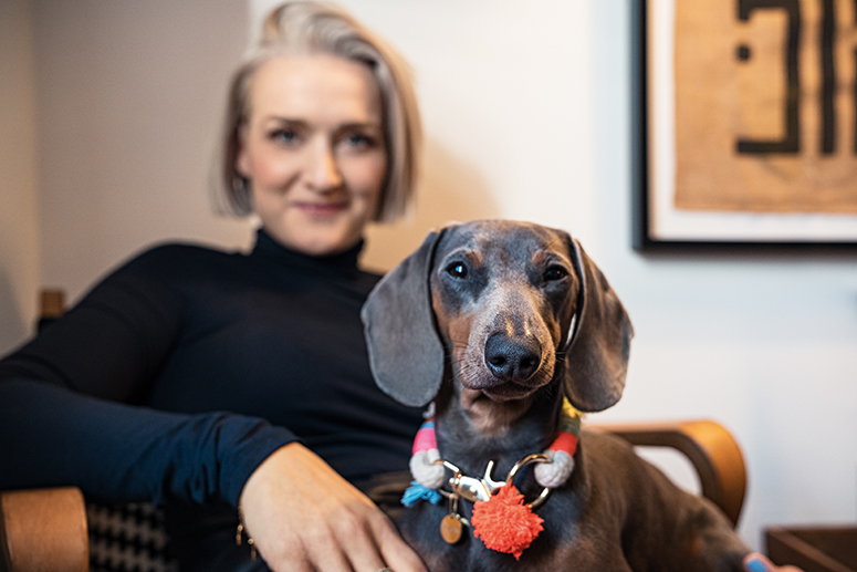 Für die erfolgreiche Gründerin war sofort klar, dass ihr erster Hund ein Frenchie sein musste. Denn die kleinen Vierbeiner sind nicht nur besonders fröhlichen, sondern haben auch ein sehr entspanntes Wesen: „Da sie mein erster eigener Hund war und es war klar, dass es ein Office-Hund wird, war es mir wichtig, einen Hund zu finden, der leicht zu erziehen und sehr sozial ist“.