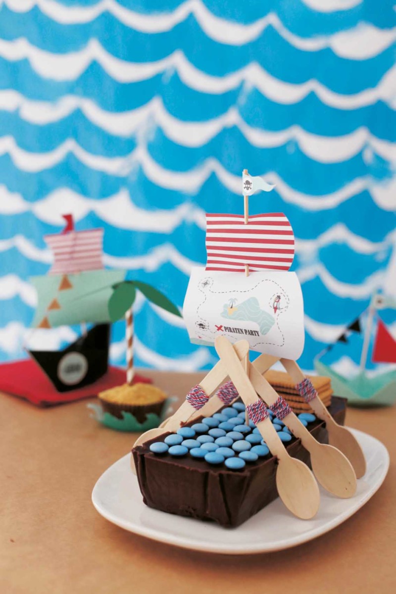Fräulein Klein lässt Kinderwünsche wahr werden: Wenn unsere lieben Kleinen davon träumen, als Piraten über die weiten Weltmeere zu ziehen, um dabei viele Abenteuer zu erleben, dann heißt es „Hisst die Segel!“ zur Piratenparty. Damit Sie keine Zeit verlieren und gleich loslegen können, gibt es hier das passende Rezept für ein süßes Piratenschiff samt Bastelvorlage. Schiff ahoi!