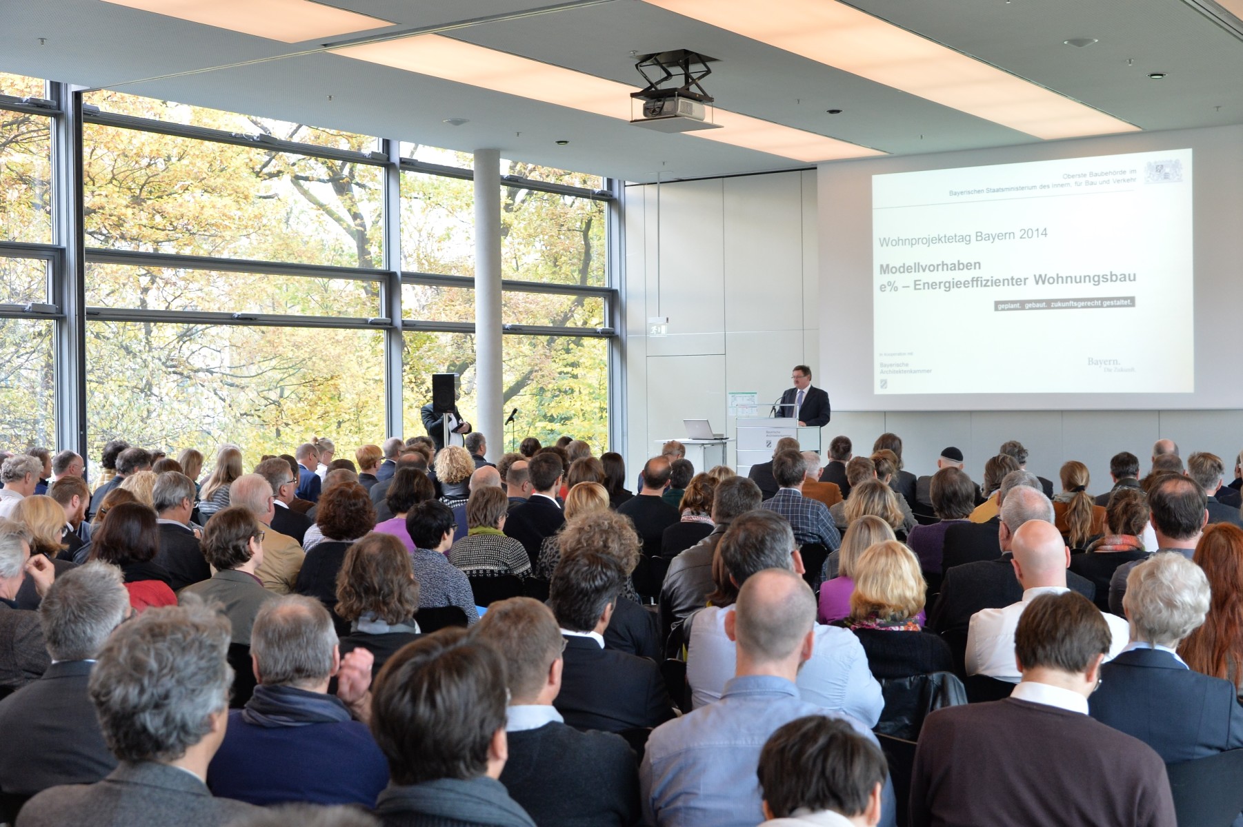 Am Wohnprojektetag Bayern 2014, der am 5. November in Kooperation mit der Bayerischen Architektenkammer im Haus der Architektur stattfand, wurden die fertig gestellten Pilotprojekte präsentiert. Die Anforderungen der Energiewende, ressourcenschonender und wirtschaftlicher Wohnungsbau, mit innovativen Konzepten und Baukultur in den neun realisierten Modellprojekten zu verknüpfen, konnten eingelöst werden. Die gut 180 Teilnehmer der Fachtagung konnten sich davon in mehreren Vorträgen überzeugen, in denen die Architekten ihre insgesamt neun Arbeiten vorgestellt haben.