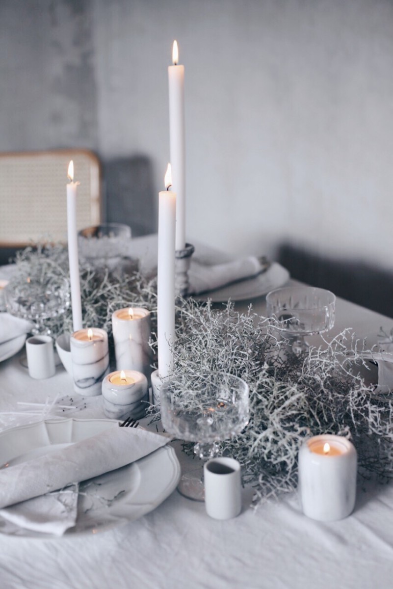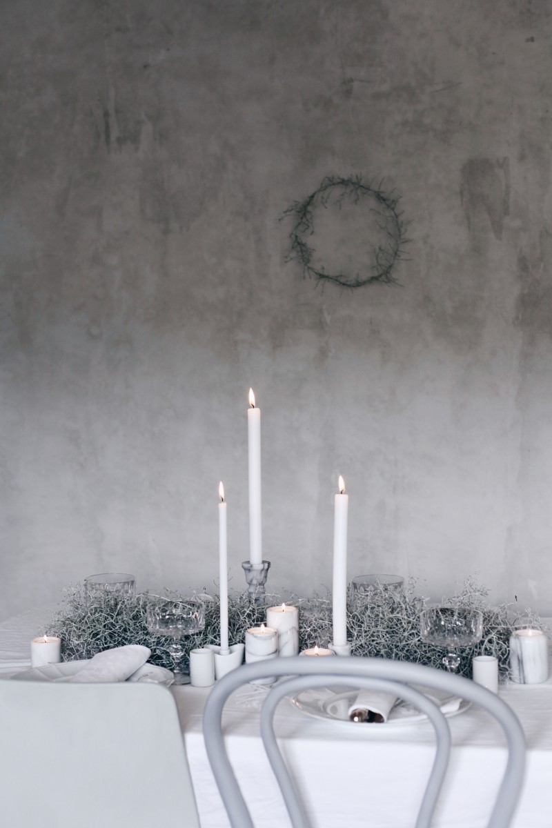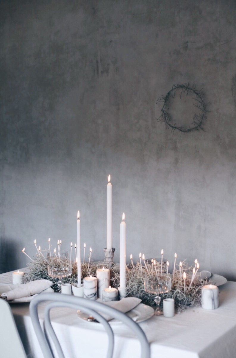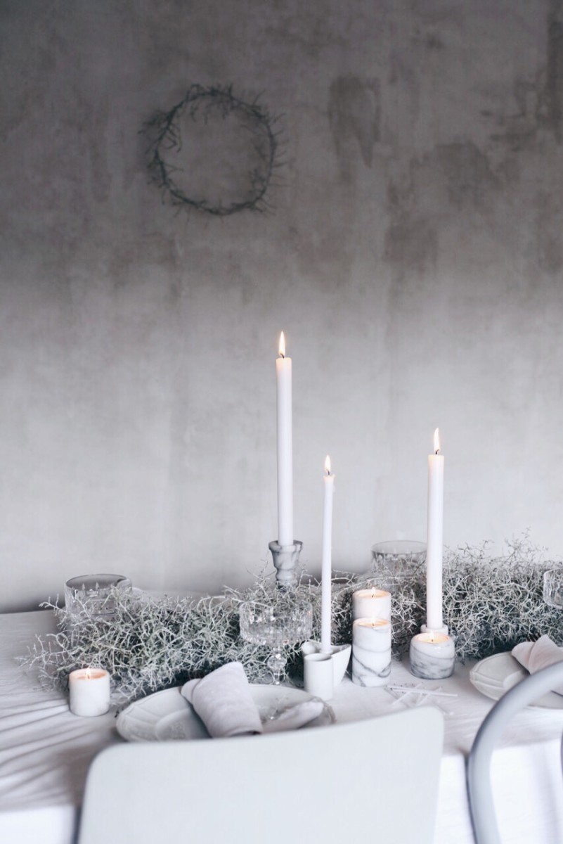 Inspiriert durch Stefanie Luxats neue Buch ‚Herzlich Willkommen‘ habe ich eine winterliche Tischdekoration kreiert. Ich sehe es schon, wie meine Gäste an diesem Tisch sitzen, nachdem ersten Aperitif das Licht draussen verschwindet und nur noch die Kerzen den Tisch erleuchten und alle sich auf den ‚Ziegenkäse-Apfelburger mit Babyleaf-Salat, Süsskartoffel-Pommes-Frites und Feigensenf’ stürzen.