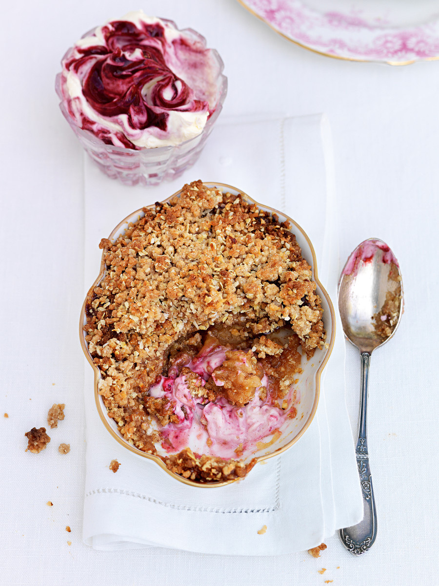 Zwar ist der Zimt ein sehr präsentes Gewürz in der Plätzchenbäckerei, jedoch kann man an kalten Wintertagen im Januar auch nicht genug davon bekommen. In einem heißen Apfel-Crumble verpackt und von einer fruchtigen Brombeersahne begleitet, kann man einfach nicht widerstehen. Das Rezept für den Apfel-Zimt-Crumble stammt aus dem Buch „Königlich und Köstlich“.