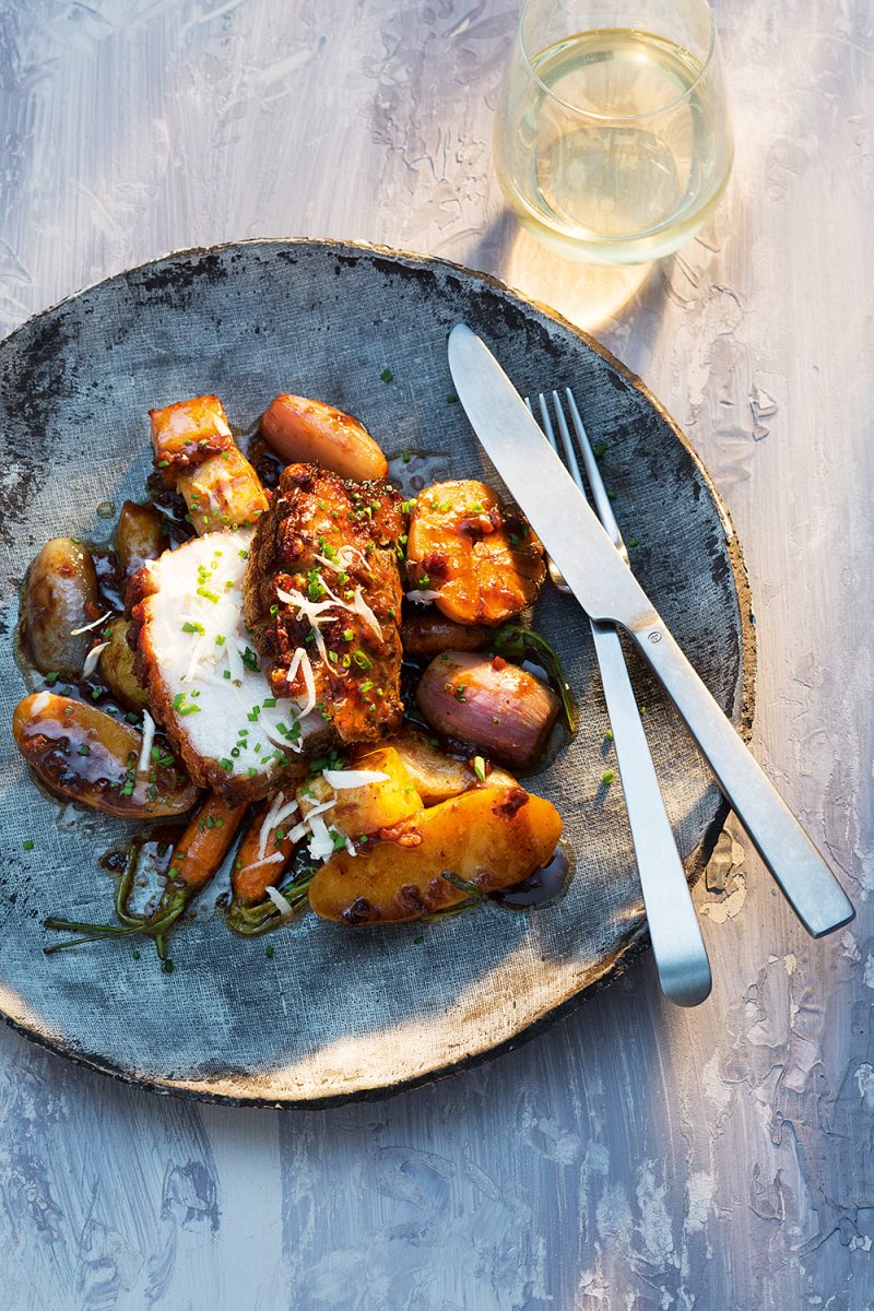So ein kleiner Wochenendausflug, der kann schon gut tun. Dieses mal vielleicht Dänemark? Zumindest kulinarisch begeben wir uns heute nach Kopenhagen, ein weiterer Halt auf der Fahrt mit dem Kreuzfahrtschiff, begleitet vom Koch Fritz Pichler. Dieses Gericht war Teil des Abschiedsessens, das Pichler für seine Passagiere am letzten Tag der Reise zubereitete: Krustenbraten mit Honig-Senf-Sauce und Schmorgemüse.
