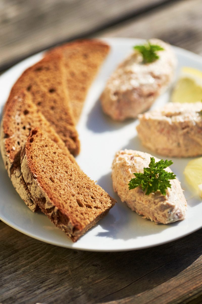 Es muss nicht immer Obazda sein. Wer bei der nächsten Biergarten Brotzeit glänzen will, der bereitet diese wunderbare Räucherfischcreme zu – schmeckt am besten zu einem Stück frischen Sauerteigbrot. Das Rezept stammt von der Herzoglichen Fischzucht in Wildbad Kreuth, mehr dazu findet sich in „Der Tegernsee“ von Franz Kotteder.