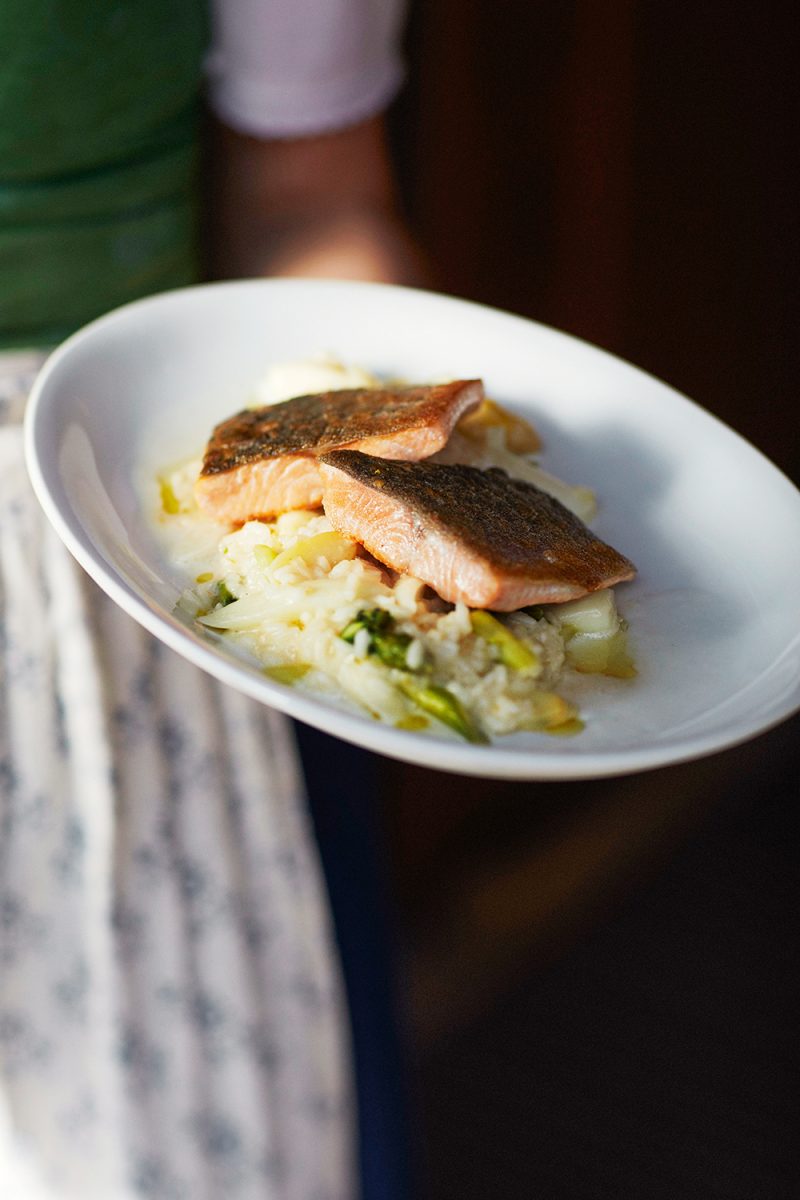 Urlaub im eigenen Land ist zur Zeit in aller Munde – eine besonders schöne Destination in Bayern ist da der Tegernsee. Wie man es sich dort gutgehen lassen kann, beschreibt Franz Kotteder in seinem kulinarischen Reiseführer „Der Tegernsee“, in dem er die schönsten Gasthäuser der Region, deren Spezialitätenrezepte und viele lokale Geheimtipps vorstellt. Wir kochen mit euch daraus diese Woche den Seesaibling mit Spargelrisotto (unbedingt noch essen, solange die Saison ist!) Das Gericht aus dem Gasthof Herzog Maximilian in Gmund ist edel und gleichzeitig unkompliziert und kommt mit wenigen Zutaten aus.