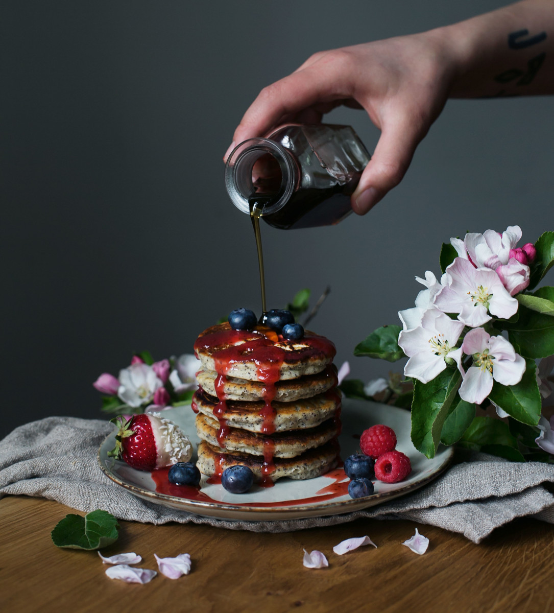 Kokos-Mohn-Pancakes mit Ziegenfrischkäse – mit so einem Frühstück wacht jeder gern auf : Es ist nicht nur hübsch, sondern auch köstlich! Stefanie Luxat begeistert in Herzlich Willkommen nicht nur mit solchen Köstlichkeiten, sondern gibt zahlreiche Inspirationen für gelungene Einladungen!
