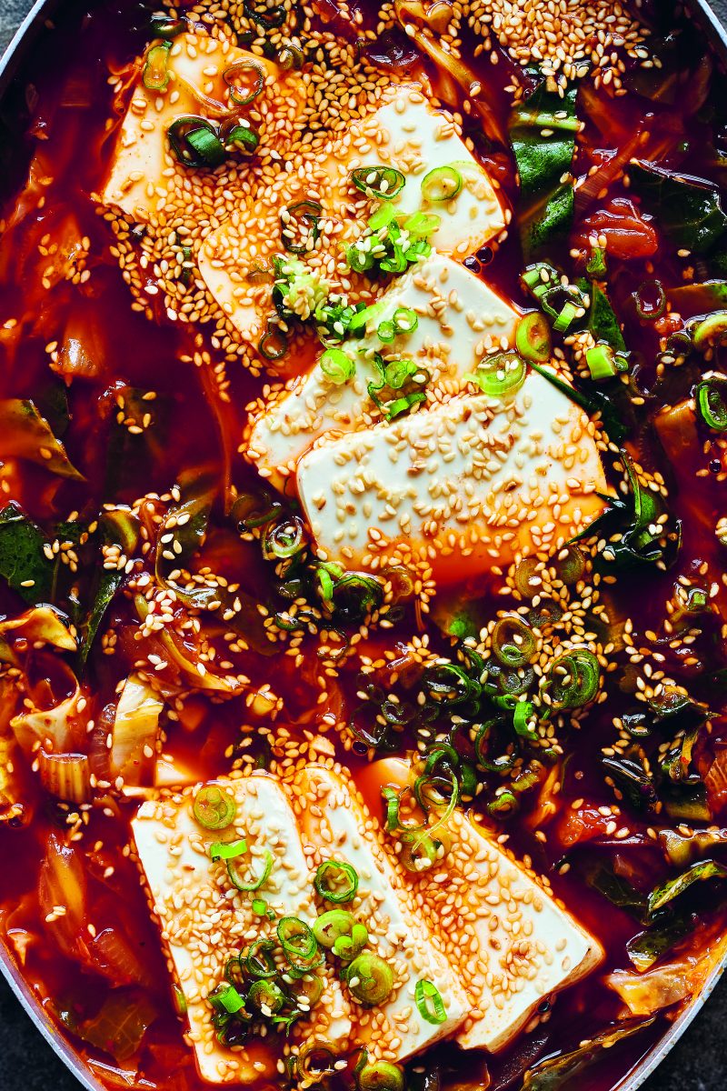 Koreanische Kimchi Suppe mit Tofu und geröstetem Sesam