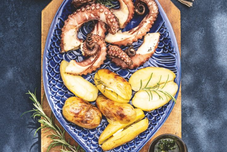 Wie Hella Witte über den Pulpo sagt: „Ich bin immer wieder begeistert, welch cleveres Tier hinter dem Pulpo steckt. Er kann sich Situationen anpassen, sich tarnen, ist schlau, neugierig und äußerst geschickt. Beispielsweise beherrscht er – den man auch als Oktopus oder Krake kennt – das Öffnen von Schraubverschlüssen problemlos.“ Gegrillter Pulpo mit Rosmarin-Knoblauch-Kartoffeln FÜR