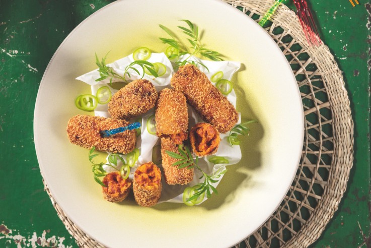 Ich liebe Frittiertes, und als ich in der Bar do Mineiro in Rio saß, bestellte ich eher aus Langeweile diese Kroketten, um die Wartezeit auf die angeblich ausgezeichnete Feijoada des Restaurants zu verkürzen. Ich war sofort hin und weg von diesen kleinen Süßkartoffelröllchen, die am Gaumen geradezu schmelzen, während gleichzeitig ihre crunchy Maniok-Kruste Rambazamba im Mund