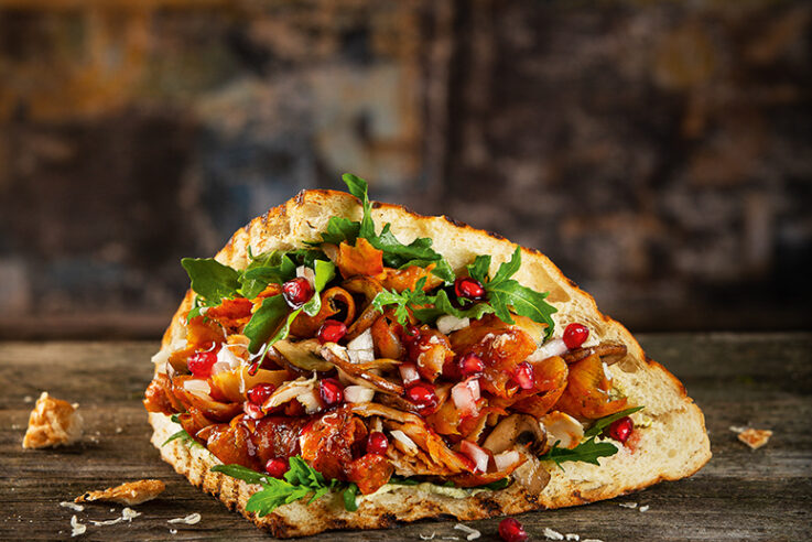 Ein köstlicher Döner mit saftigen Granatapfelkernen verleiht dem traditionellen Gericht eine erfrischende und fruchtige Note. Die süß-säuerlichen Aromen der Granatapfelkerne harmonieren perfekt mit dem herzhaften Geschmack des Fleisches und der würzigen Soße. Dieser einzigartige kulinarische Twist verleiht dem Döner eine exotische und unvergessliche Geschmackserfahrung. Ein Döner zum Reinbeißen ZUTATEN: 100 g Hähnchenfleisch (Brustfilet), einige Stunden