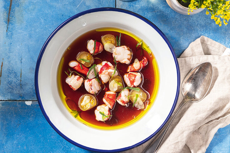 Ein kleiner Eindruck aus dem Buch von Tim Raue zum Rezept: „Oh Ramiro, du bist ein paradiesischer Ort für alle, die Krustentiere lieben! Hier serviert man sie ultrafrisch, pur und puristisch zubereitet: Langusten, Hummer, Carabineiros, alle Arten von Muscheln und Meeresschnecken sowie himmlische Garnelen. Letztere sind süß, saftig, salzig und unglaublich zart. Mein Favorit waren