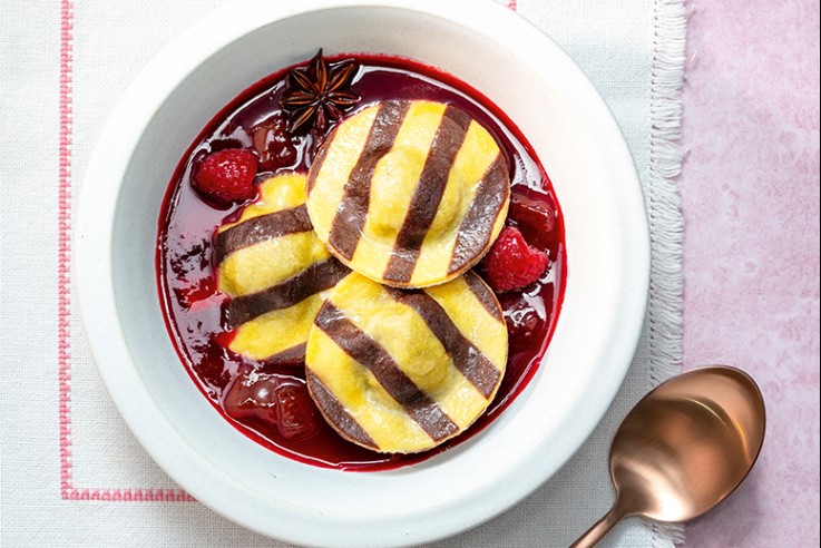 Ravioli kennt jeder! Aber als süße Nachtisch? Alles ist möglich, wenn man das richtige Rezept kennt. Die Kombination aus einer süßen Füllung und einer fruchtigen Soße lässt diese Pasta-Version einem das Wasser im Mund zergehen. Süße Ravioli in Rhabarbersud ZUTATEN (Ravioliteig): 50 g Hartweizengrie 100 g Weizenmehl 50 g Ei 20 g Eigelb 1 Prise