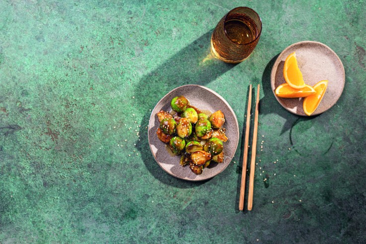 Rosenkohl neu gedacht: knusprig gebraten statt weichgekocht, mit einer Glasur aus Miso, Honig und Orangensaft. In unter 20 Minuten entsteht so ein vegetarisches Highlight – als Snack, Beilage oder einfach mit einer Schale Reis. Miso-Rosenkohl mit Orangen-Glaze Vorbereitungszeit: 10 Minuten Bratzeit:10 Minuten Für 2-3 Portionen ZUTATEN ca. 300 g frischer Rosenkohl (halbes Netz) 1 EL