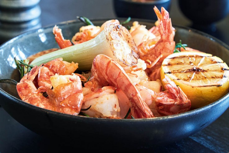 Dünen, Sonne, salzige Meeresluft und dazu das passende Essen. Unser Rezept der Woche stammt aus dem „Dorfkrug Bar & Grill“ in Kampen, das Restaurant im maritimen Stil kann bereits auf eine uralte Tradition zurückblicken. Viele weitere Restaurants und deren Lieblingsgerichte finden sich in „Zu Gast auf Sylt“, Geheimtipps garantiert. Gambapfanne mit Aioli ZUTATEN GAMBAS 500