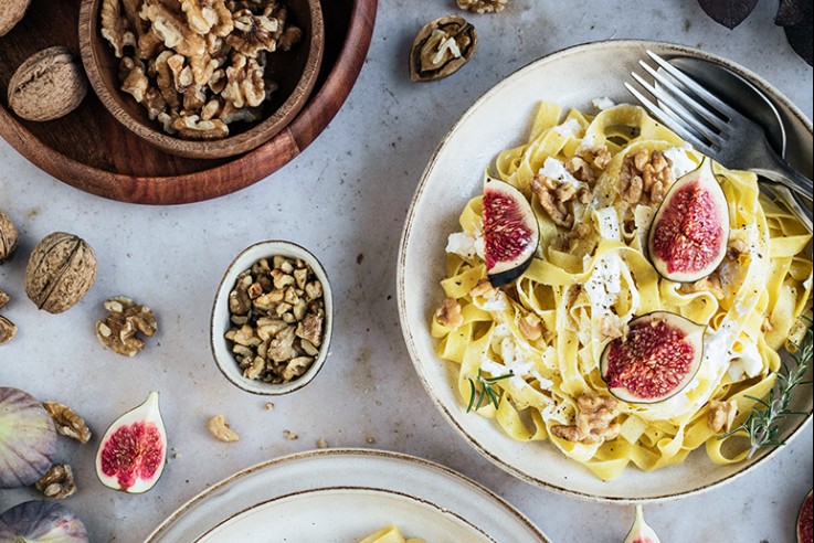 Die Kombination aus Ziegenkäse und Feigen ist eine optimale Verschmelzung von herzhaft und süß. Beide Aromen kommen wunderbar zur Geltung, wobei man das Süße noch mit ein wenig hochwertigem Honig unterstreichen kann. Durch die dekorativen Feigenviertel ist das Gericht aus „Die 100 besten Rezepte der besten Foodblogger“ auch optisch ein echter Hingucker. Tagliatelle mit Ziegenkäse