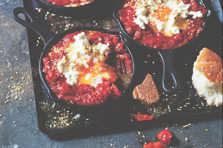 Gemeinschaftsöfen sind fester Bestandteil der marokkanischen Kultur. Wir haben uns eine Zeit lang mit Hamid, dem Bäcker, unterhalten, und fanden heraus, dass er sein Lieblingsgericht, marokkanische Eier, mittags im Backofen zubereitet. Hamids knusprig-frisches Brot passt hervorragend zu diesem köstlichen, einfachen Gericht, das der perfekte Tipp für kalte Wintertage ist. Marokkanische Eier 2 EL Olivenöl 1