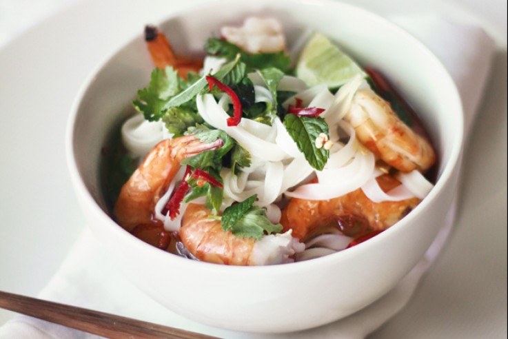 Eine Spezialität beim Vietnamesen sind die Suppen. Die Brühen kräftigen, sättigen und hinterlassen ein wohliges Gefühl. Also genau die richtige Mahlzeit in der Schwangerschaft, findet unsere Autorin Hannah Schmitz (Das Mama-Kochbuch). Das Rezept eignet sich aber auch für alle anderen, ohne dass die Hormone auf Hochtouren laufen. Reisnudelsuppe mit Garnelen und Limetten ZUTATEN 100 g