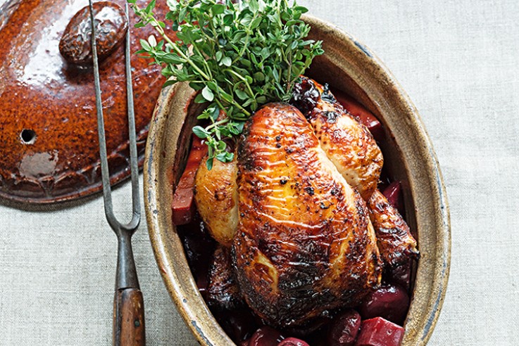 Der französische Bistroklassiker wird von Tim Raue als ganzes Stubenküken serviert, das vorab in einem kräftigen Jus aus Markus Schneiders Rotweincuvée Black Print, Thymian, Lorbeer und Rosmarin saftig gart. Dadurch bekommt es eine betörende, fast schon schwarze Kruste, bleibt innen aber zart rosafarben. Dazu serviert ihr am besten Kartoffelpüree. Ein Klassiker der französischen Küche ZUTATEN