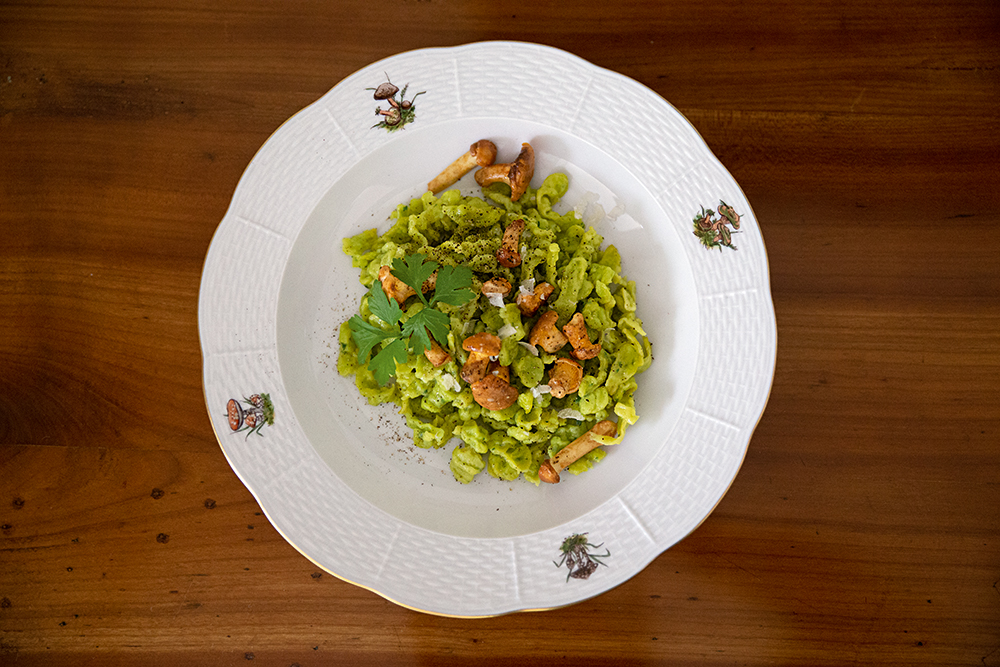 Petersilien-Spätzle mit Pfifferlingen