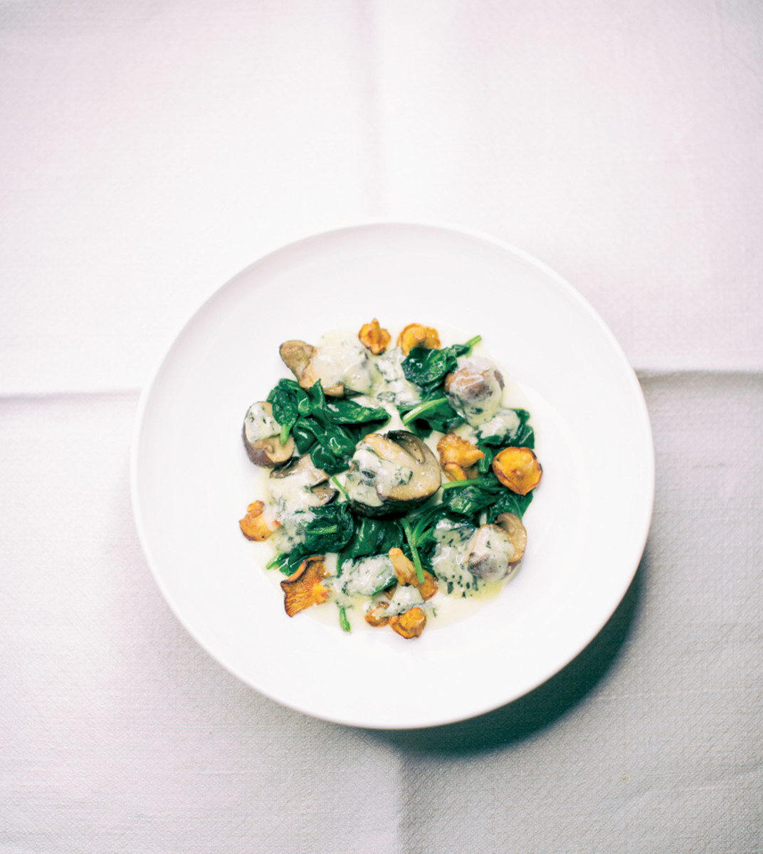 Bevor die gemütliche (Vor-)Weihnachtszeit beginnt, in der traditioneller Weise viele Fleischgerichte konsumiert werden, möchten wir Ihnen ein schnelles, einfaches und dabei köstlich gesundes aber vor allen Dingen vegetarisches Gericht aus unserem Buch „Deutscher Wein und deutsche Küche“ von Paula Bosch und Tim Raue ans Herz legen. Tim Raue nennt dieses Gericht seinen „Zuhause-Klassiker“, weil die verwendeten Produkte schnell und unkompliziert in jedem Supermarkt zu kaufen sind und die Verbindung zwischen sautiertem Spinat, Pilzen und Blauschimmelkäse so gut wie jedem schmeckt. Machen Sie es sich gemütlich und genießen Sie diesen Klassiker.