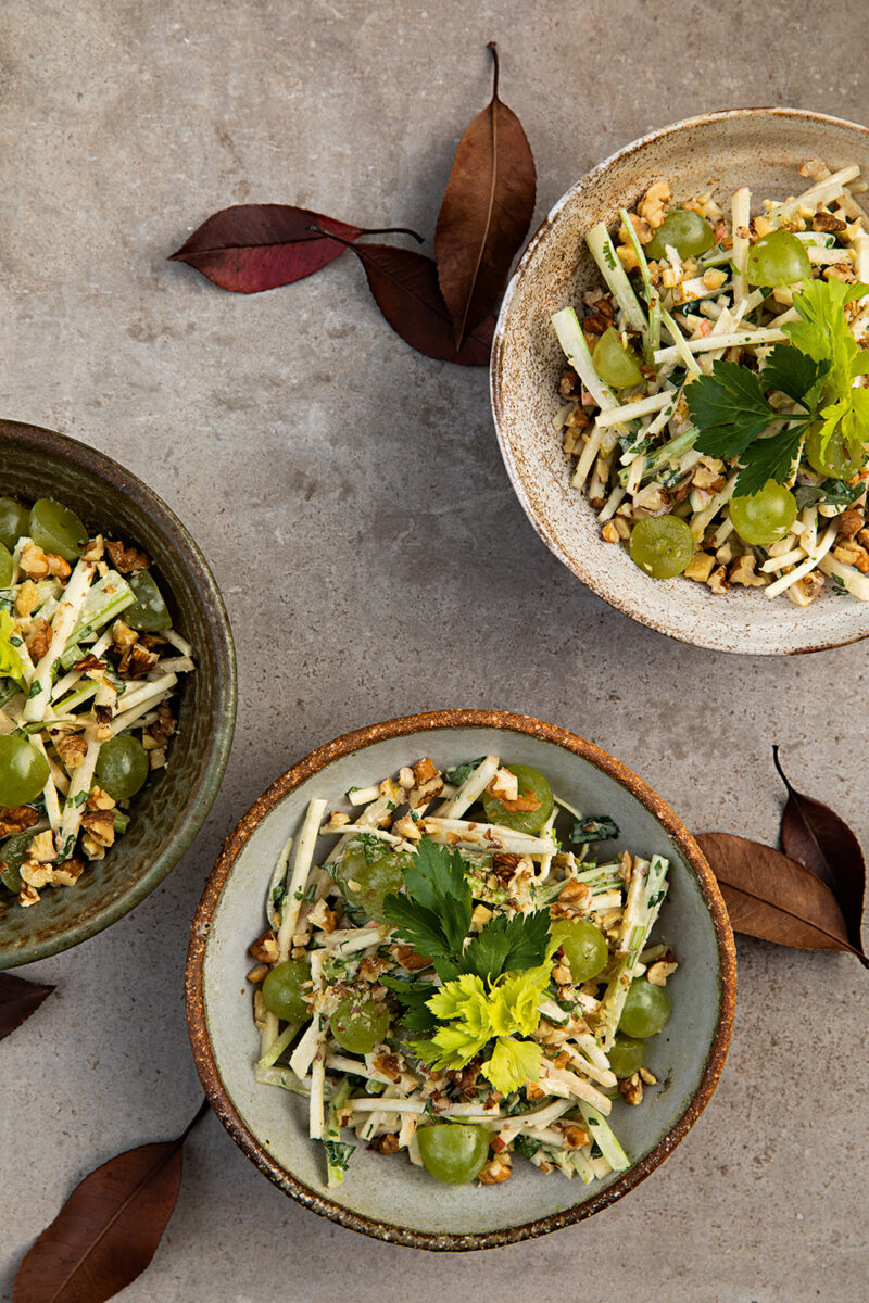 Waldorfsalat „de luxe“, mit Weintrauben, Birne und Pekannüssen