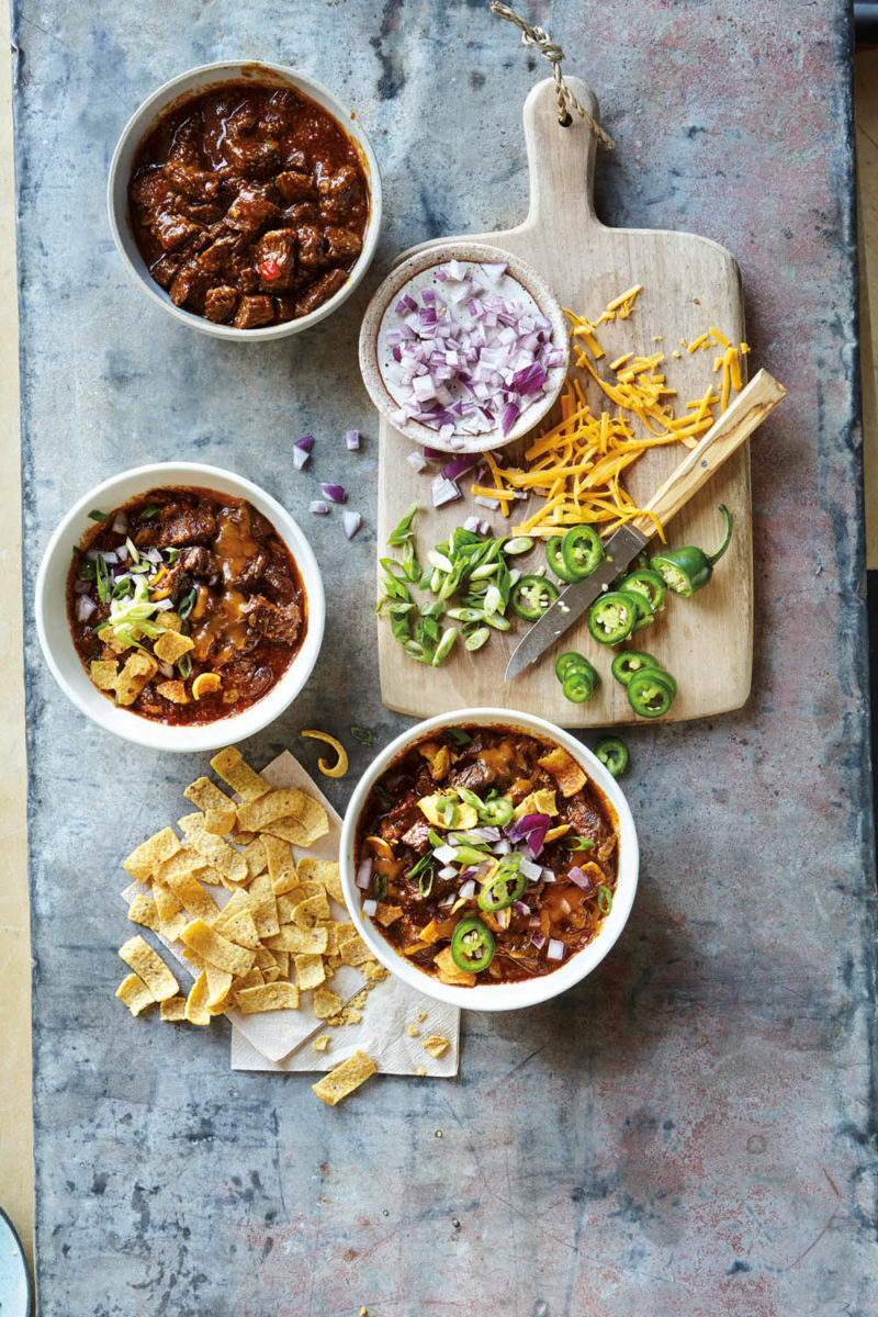 Die Tage werden kürzer und die kalten Nächte länger – Zeit für ein bisschen Schärfe, die uns einheizt! Dafür eigenen sich besonders Eintöpfe gut, die direkt für ein paar Tage halten und dann abends nur noch erwärmt werden müssen. Eingekuschelt auf dem Sofa vor dem Abendprogramm lässt sich so die Winterzeit genießen. Positiver Nebeneffekt: die Hände kann man sich schon vorab an der Schüssel wärmen, bis man sich auf das Chili stürzt. Für den kleineren Hunger zu Spieleabenden unter Freunden oder fürs Schlemmen beim Staffelfinale gibts weitere leckere Rezepte im Buch Samstagabend.