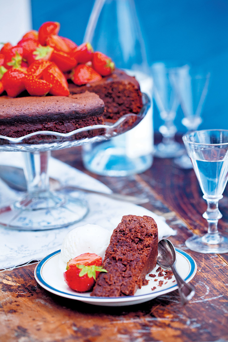 Schokolade und Erdbeeren – die perfekte Kombination! Wer sich eine kleine Sünde leisten will, der sollte unbedingt diesen Schokokuchen mit Grappa-Erdbeeren aus Lisa Lemkes „Sommerküche“ probieren. Einfach himmlisch! Wer lieber eine alkoholfreie Variante möchte, kann statt dem Grappa auch Holunderblütenbsirup probieren oder die Erdbeeren natürlich einfach so auf den Kuchen legen. Der Kuchen schmeckt noch besser, wenn er einen Tag durchzieht, die Erdbeeren dagegen sollten erst kurz vor dem Servieren mariniert werden.