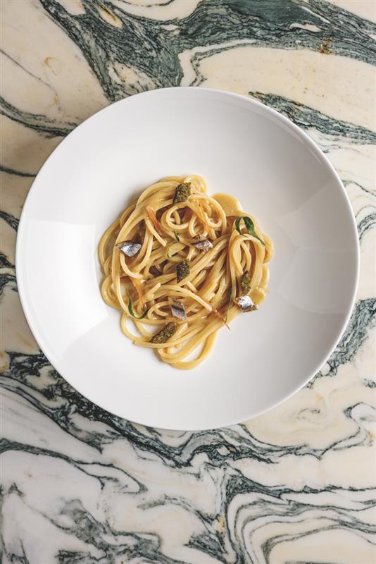 Spaghettone mit Estragonbutter, Sardellen und Zitrone