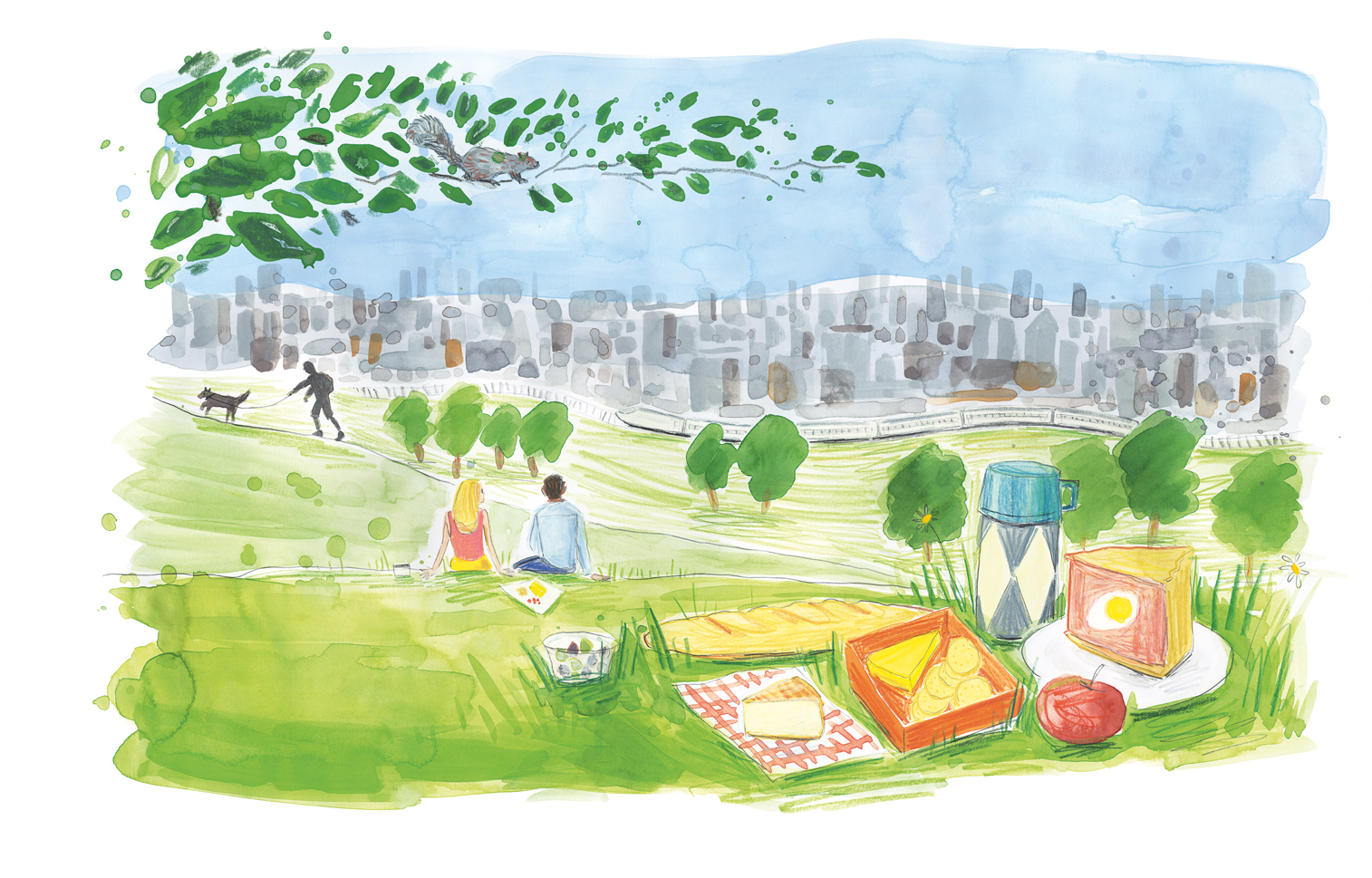 Ella Risbridger, Autorin von Die Geschichte beginnt mit einem Huhn, empfiehlt Picknicks wann immer es geht. Nicht nur mit Freunden, sondern auch alleine in der Mittagspause, da nennt es sich dann Pack-up. Das gehört dabei zu einem gelungenen Picknick: Etwas zum Dippen; etwas, mit dem man dippt; etwas Grünes und Knackiges; etwas Pikantes und Sättigendes sowie etwas Süßes. Im Folgenden ein echter Picknick-Klassiker:
