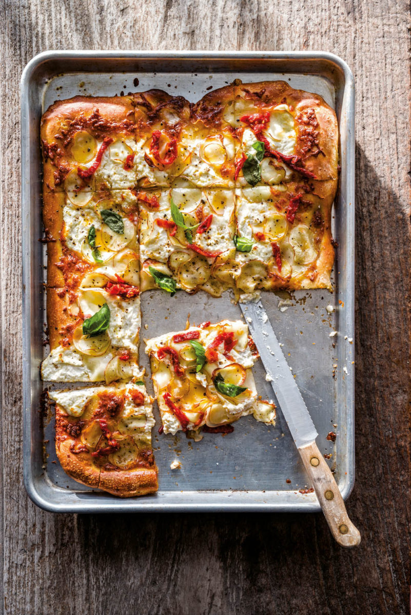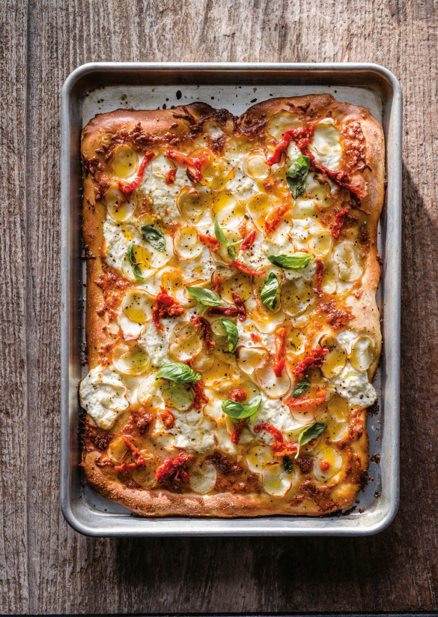 Zubereitung Weiße Pizza mit Kartoffeln und Trockentomaten
